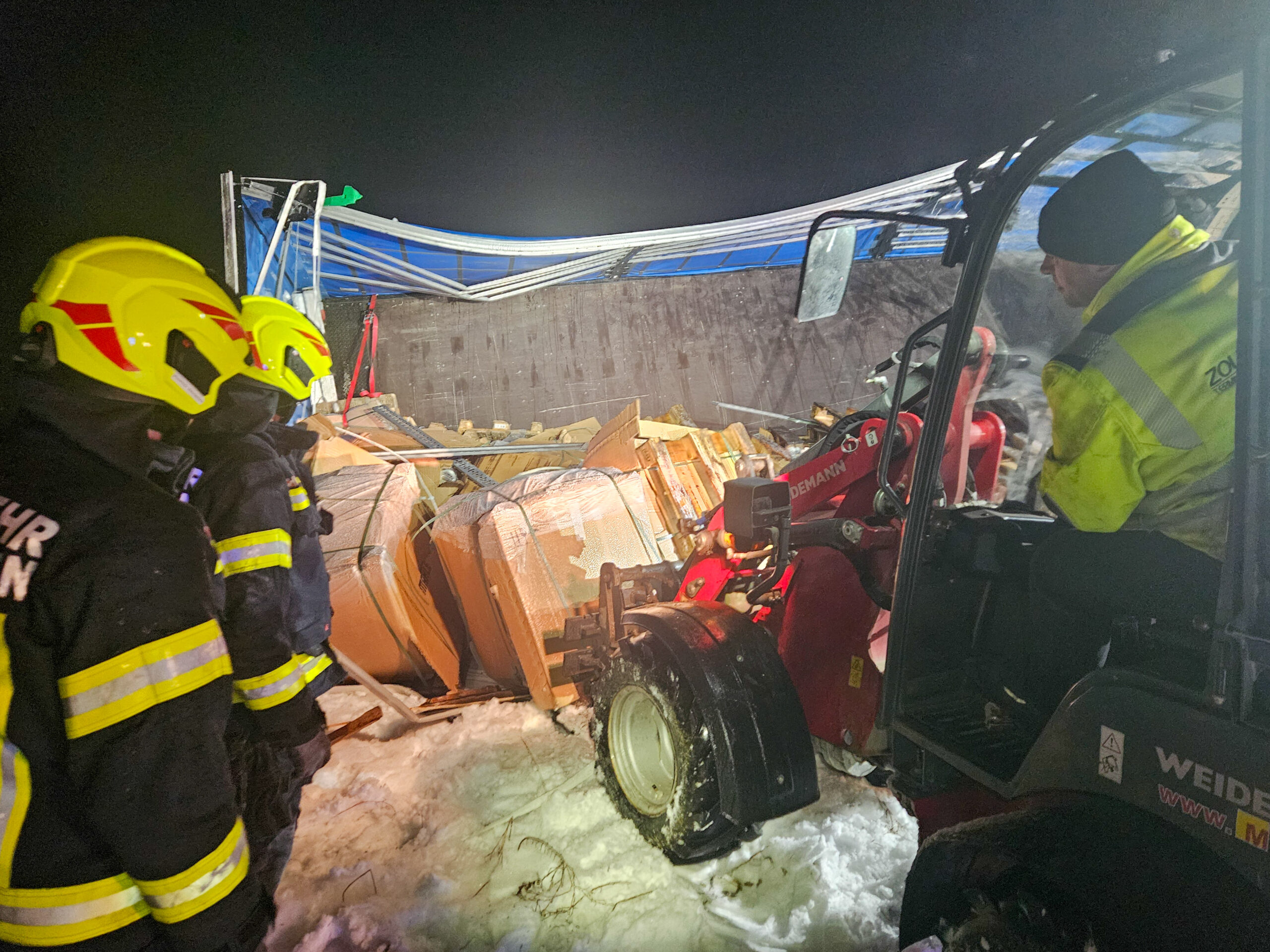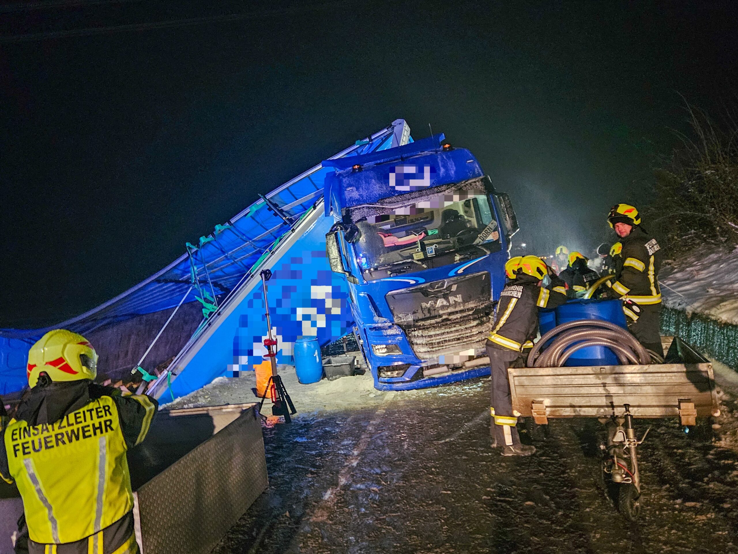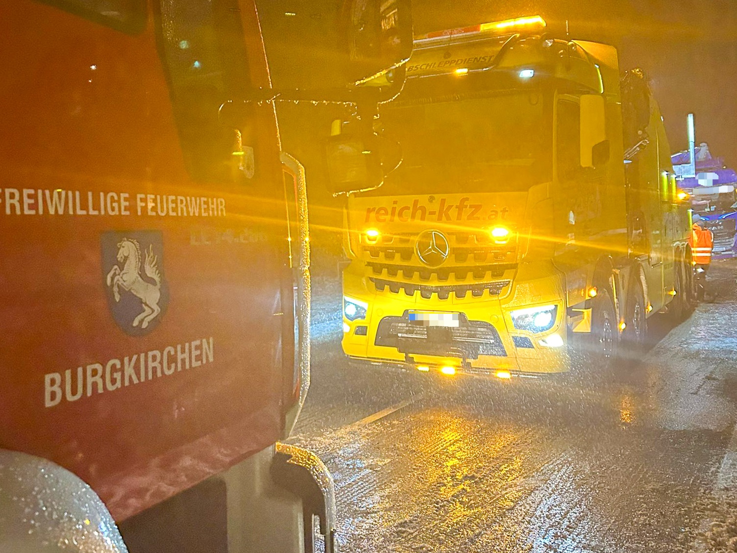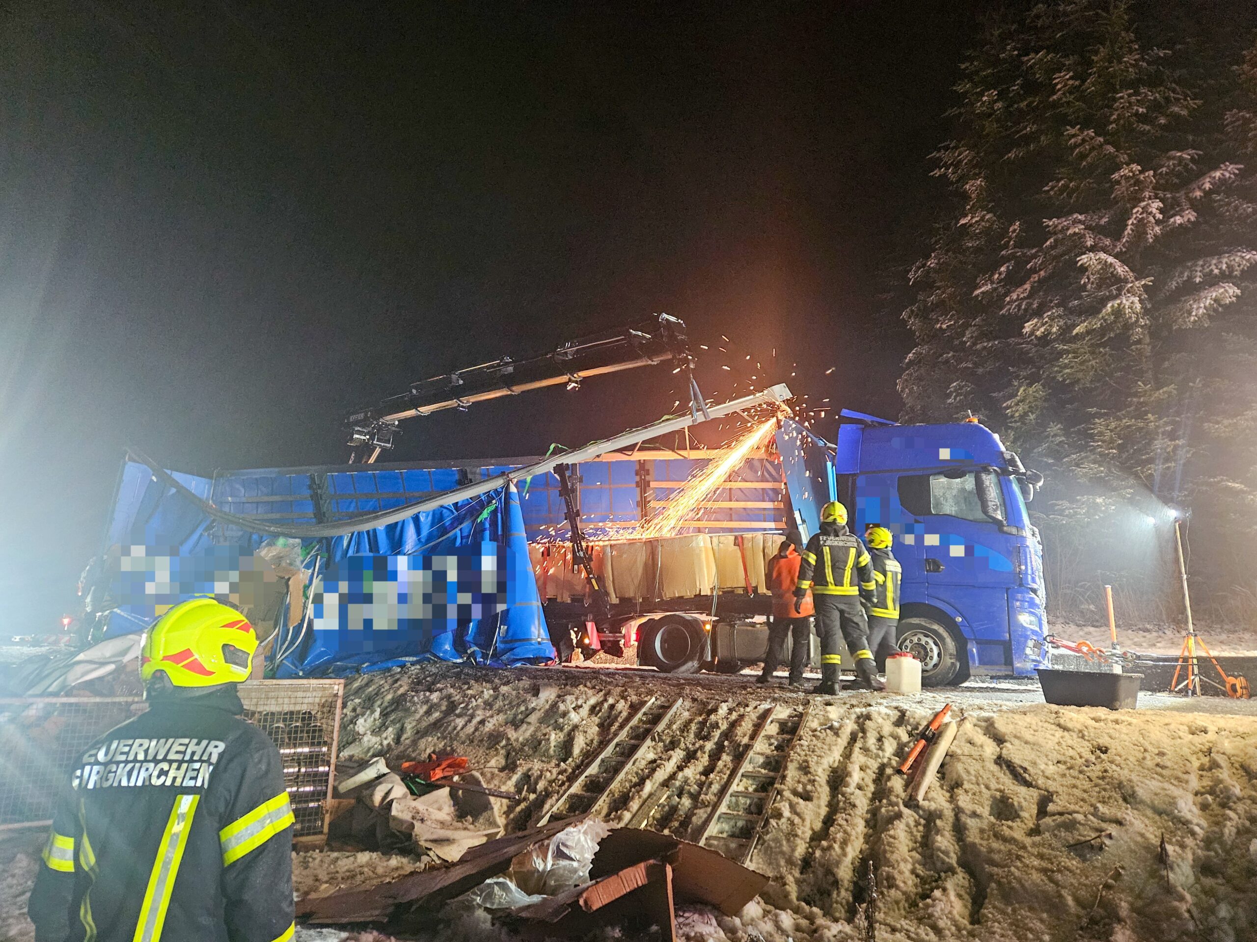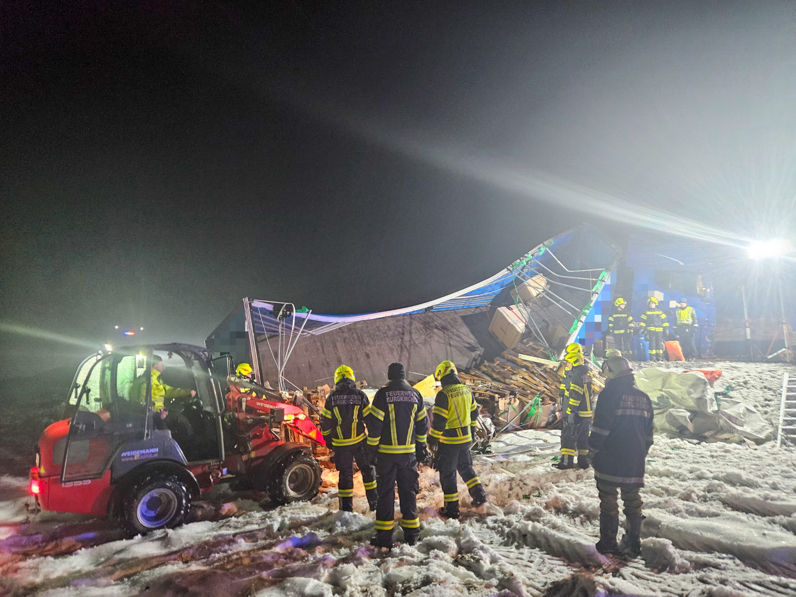 Im Einsatz waren die FF Burgkirchen mit KDOF, LFA-B, TLF-A und KLF-A und 28 Einsatzkräften, eine Transportfirma, die Polizei sowie ein Spezialbergeunternehmen