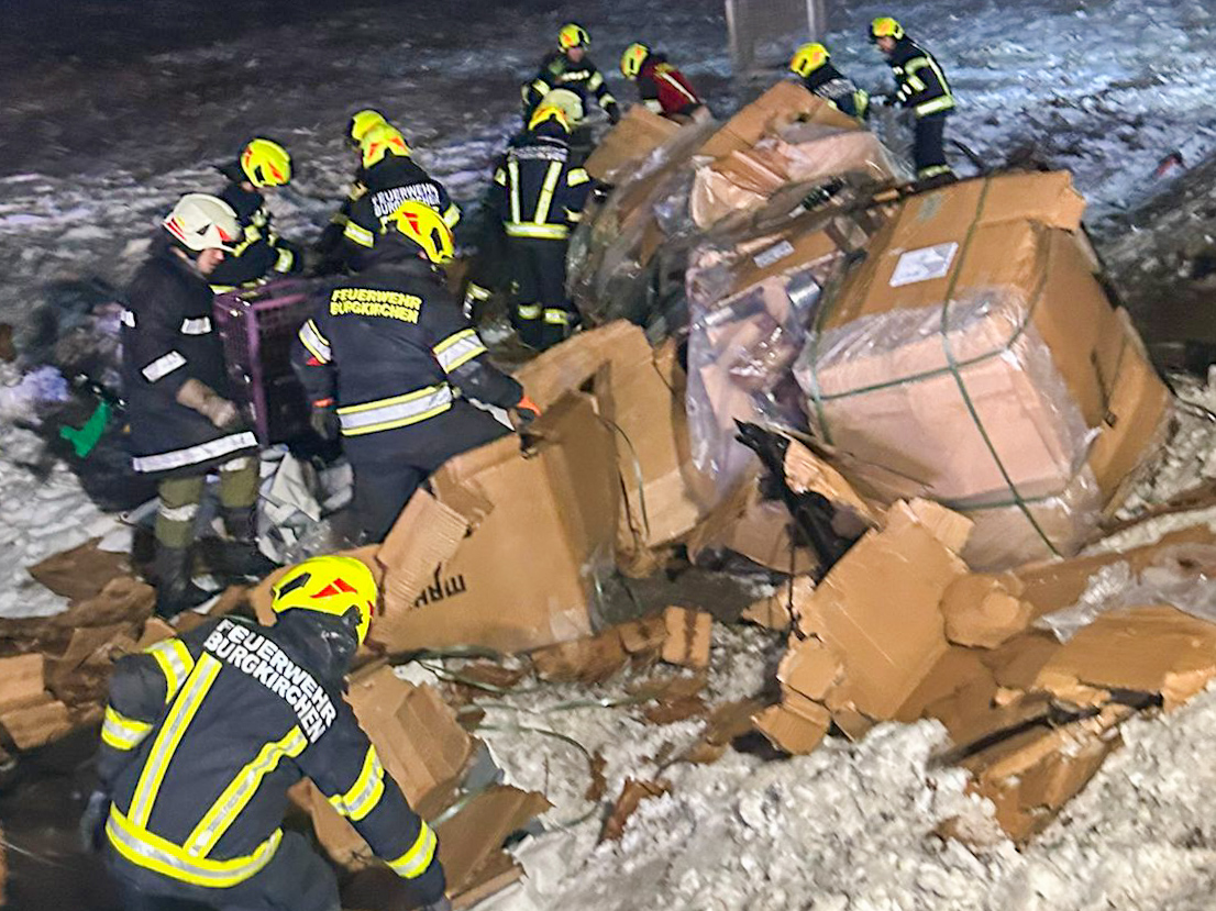 Ein LKW sowie 2 PKW, kamen auf der B147 in der Ortschaft Albrechtsberg (Gemeinde Burgkirchen) von der Fahrbahn ab und stürzten in ein angrenzendes Feld bzw. blieben auf der teils eisigen und teils matschigen Fahrbahn hängen.