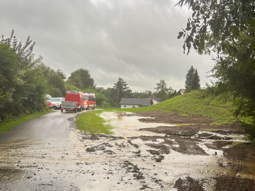 Überflutete Fahrbahnen in unserem Gemeindegebiet (teilweise Straßensperren) sowie überflutete Keller und Gebäudeteile, waren dabei unsere Hauptalarmierungsaufgaben.