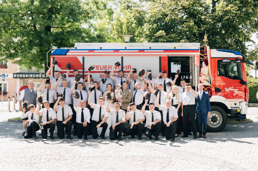Ein besonders schöner Tag, war der Samstag, 19. Juli 2025 nicht nur für die Kameradinnen und Kameraden der FF Burgkirchen sondern auch für das Brautpaar Ramona und Christoph Rendl – nämlich ihr HOCHZEITSTAG.