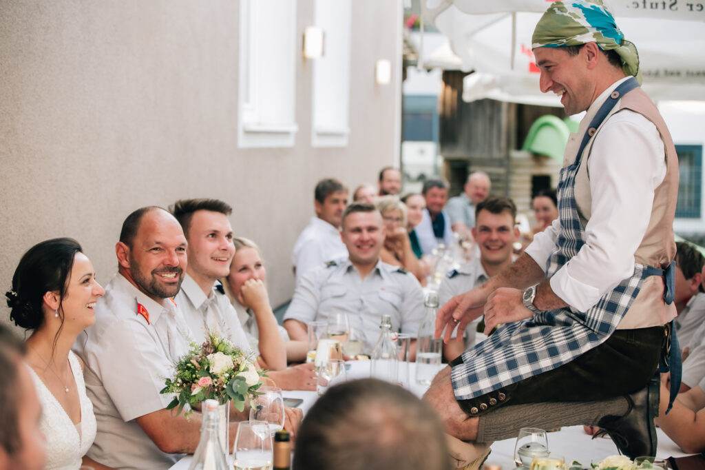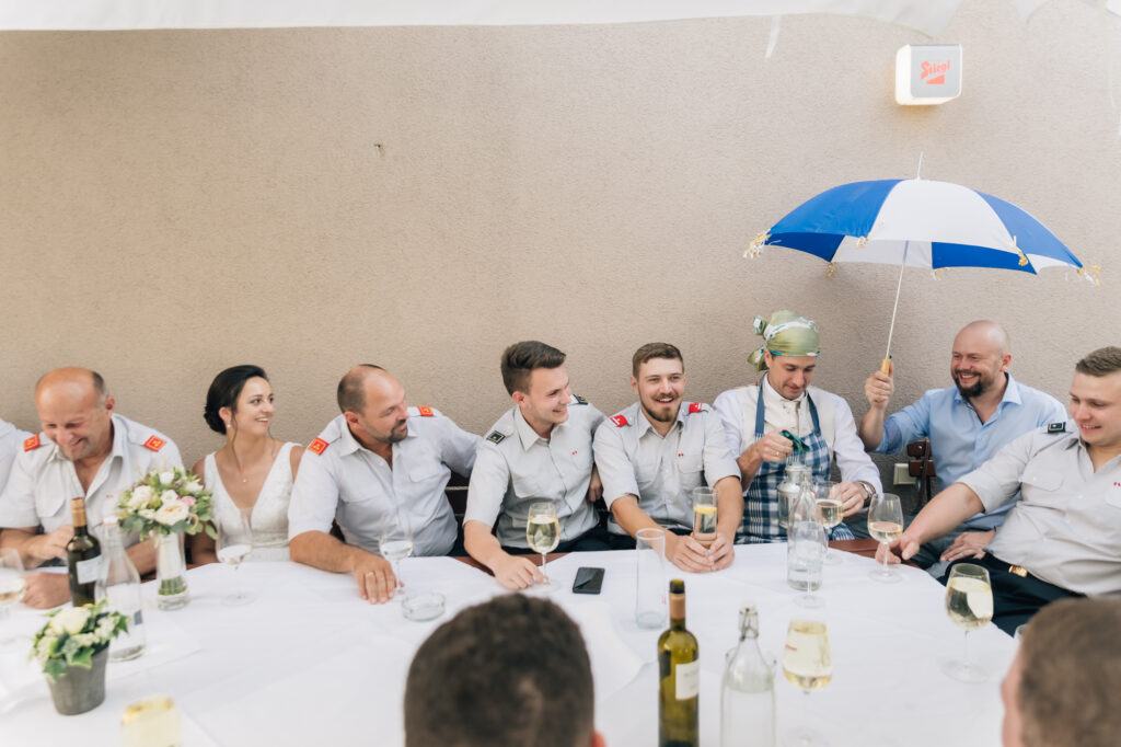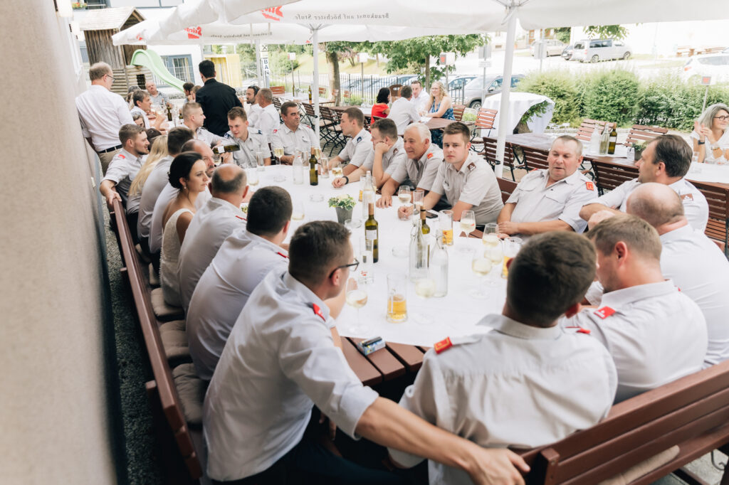 Bereits um 6 Uhr Früh, starteten 16 Kameraden unserer Feuerwehr mit dem traditionellen Hochzeitsschießen. Bestens versorgt mit Frühstück und Jause, durften wir unseren Feuerwehrkameraden und Bräutigam Christoph in den Hochzeitstag wecken und begleiten.