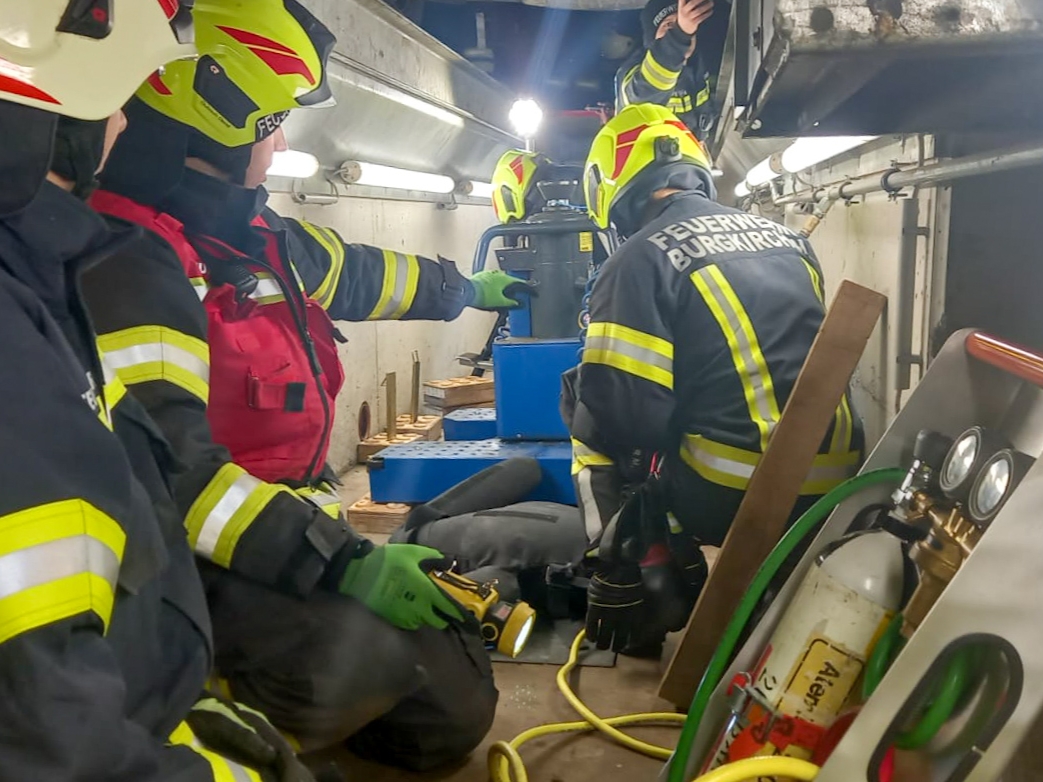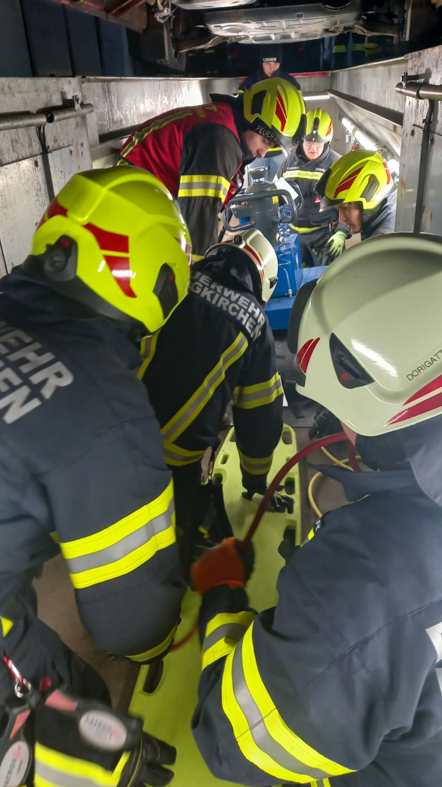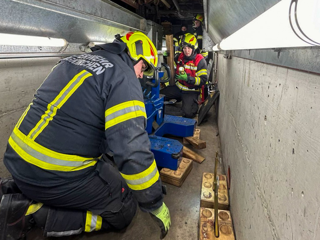 In einem für die Einsatzkräfte sehr beengten Raum, musste mit Hilfe von Hebekissen, Sicherungspflöcken und diversen Utensilien gearbeitet werden.