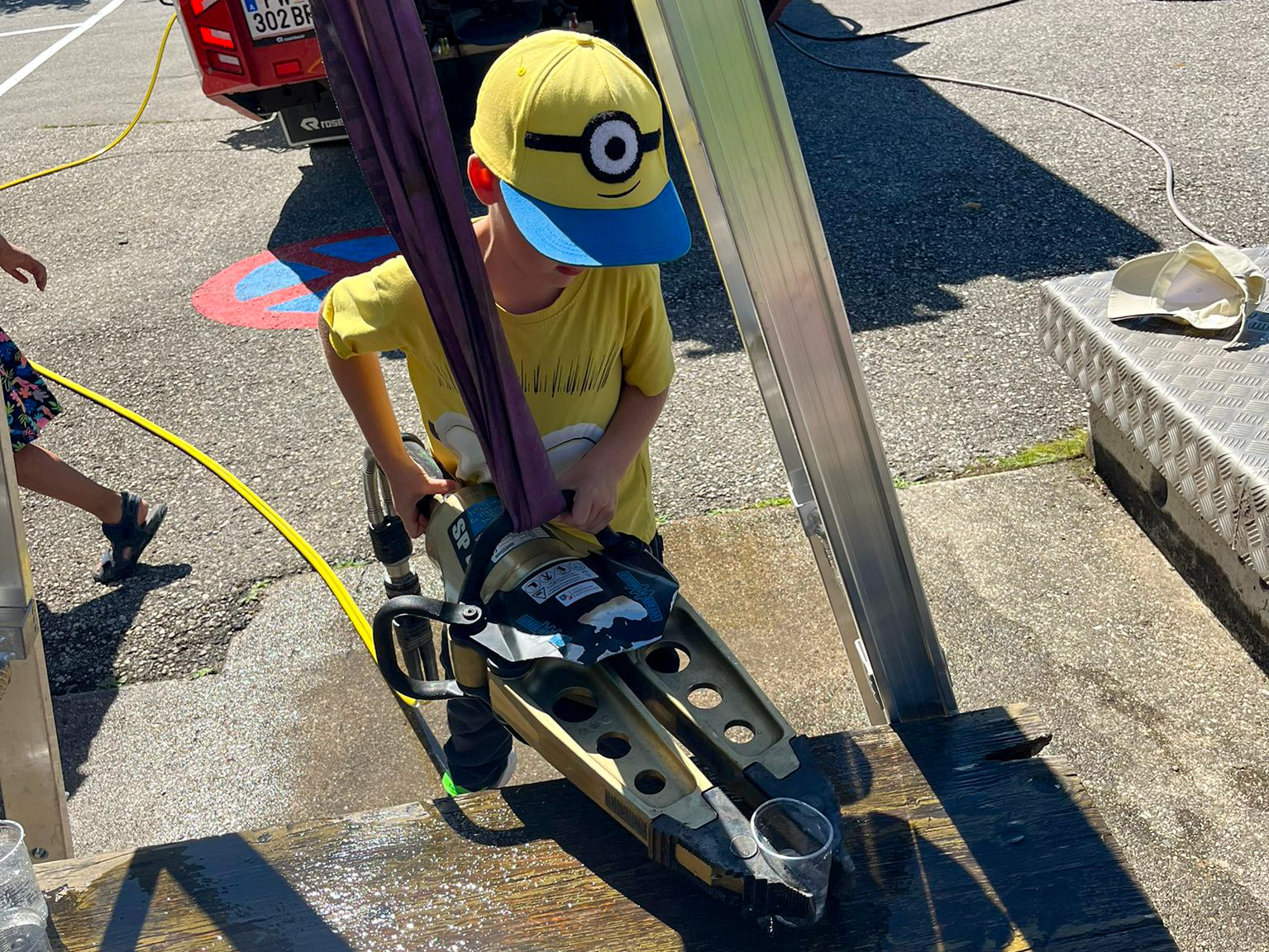 Auf mehreren Stationen, durften die große Zahl an Kindern (fast 60 Kids) die umfangreichen Aufgaben und Tätigkeiten der Feuerwehr miterleben.