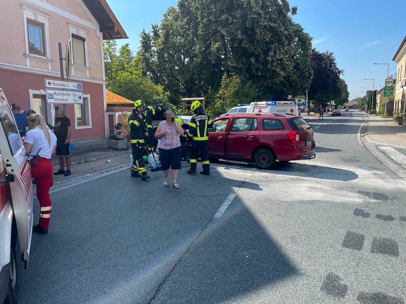 Am Samstag, 27. Juli 2024, wurden wir zu einem Verkehrsunfall auf die Kreuzung B147/L1053 („Mauch-Kreuzung“) im Ortszentrum von Burgkirchen alarmiert.
