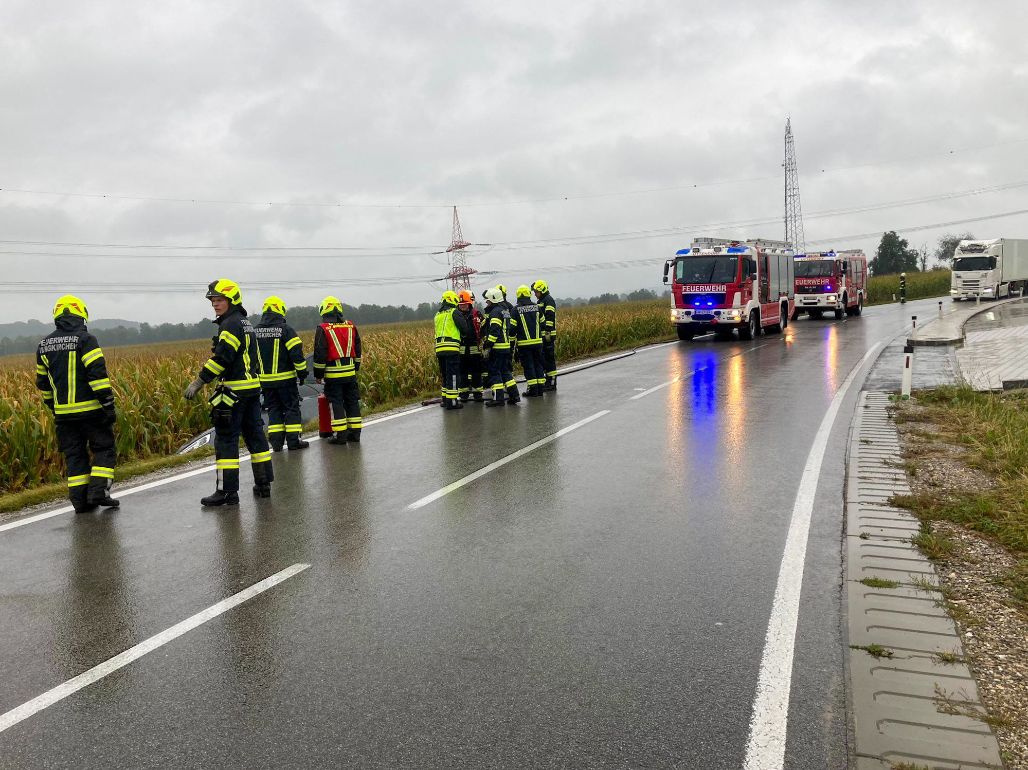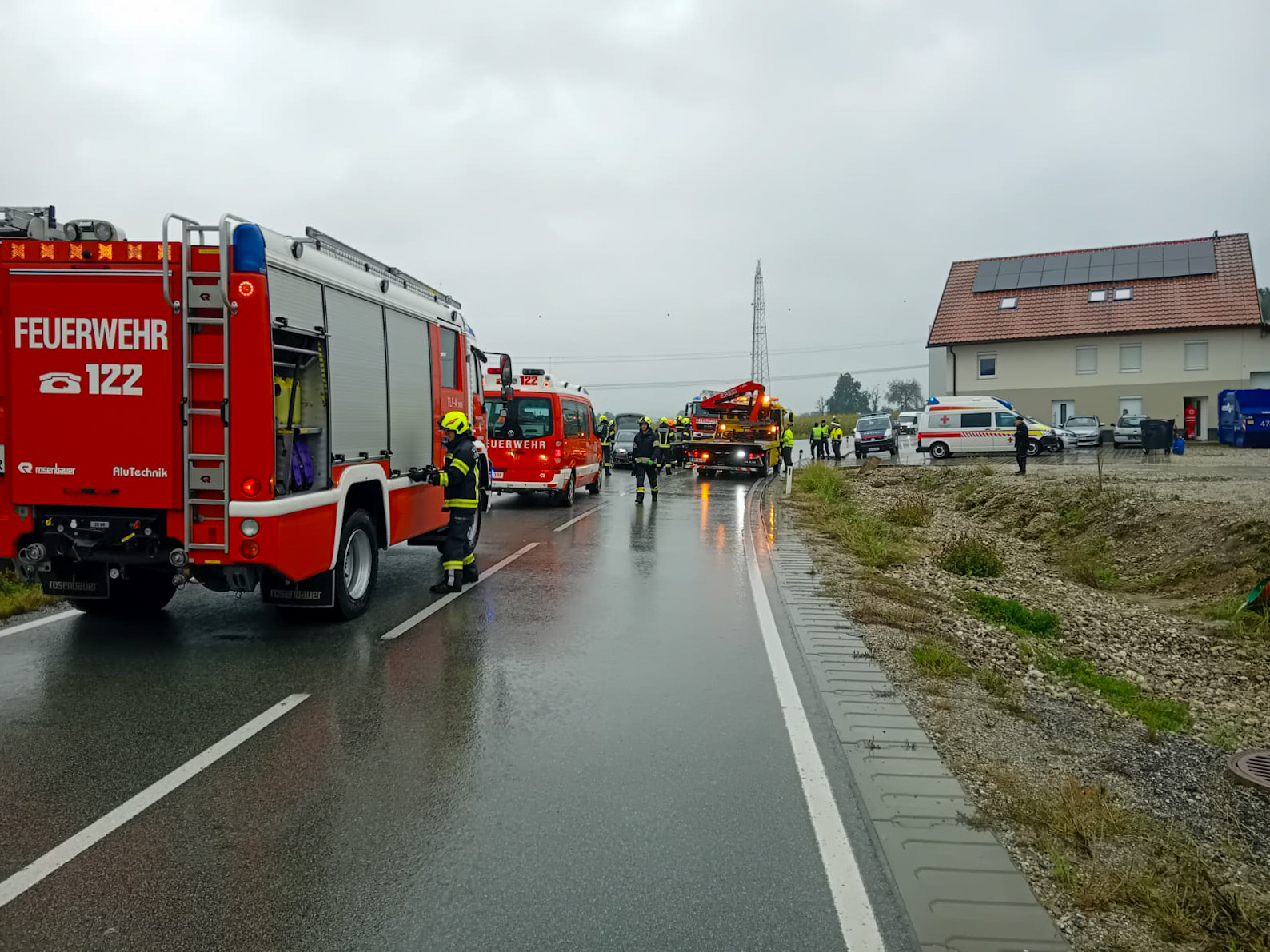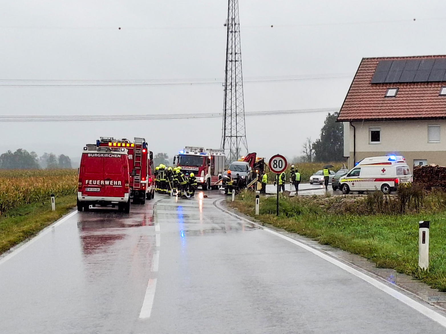 Im Einsatz waren die FF Burgkirchen mit 18 Einsatzkräften und KDOF, TLF-A und KLF-A, die FF Uttendorf, die FF Mauerkirchen, Polizei und Rotes Kreuz sowie ein Abschleppdienst.